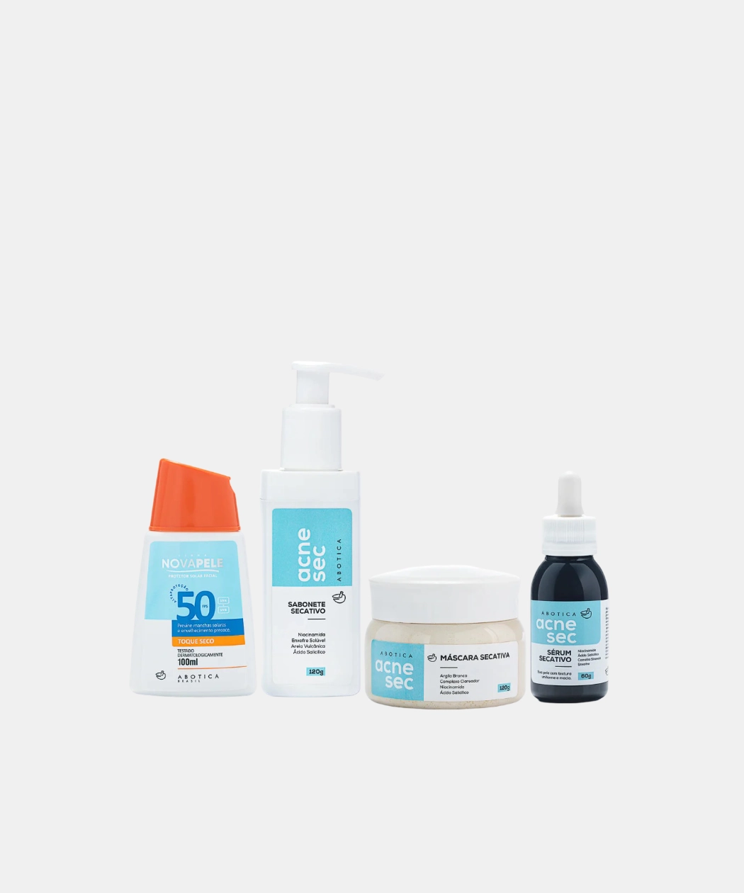 O kit possui 4 dermocosméticos fundamentais para o controle das inflamações acneicas, e controle da oleosidade.